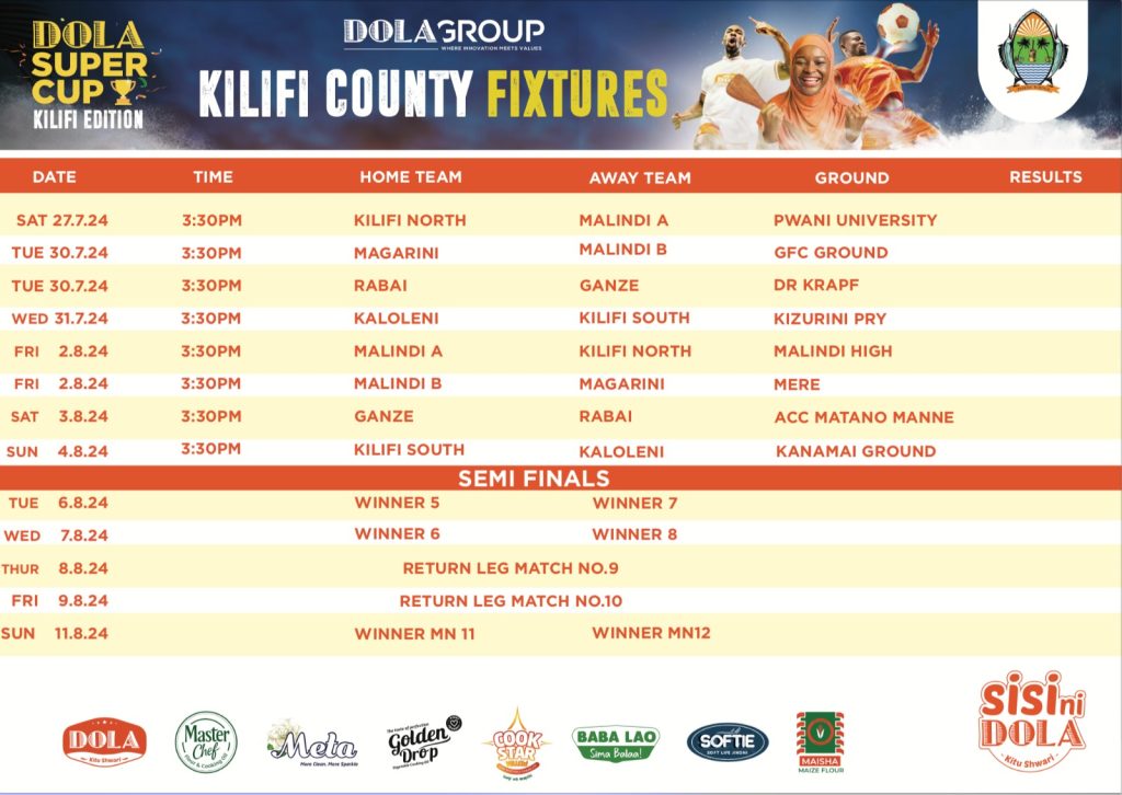 Kulingana na Saddam Suleiman ambaye ni meneja wa mauzo katika kampuni ya Dola ni kuwa Kilifi mashindano hayo ya soka yatahusisha timu nane za wavulana huku bingwa akisafiri kwa ajili ya mashindano ya kimkoa katika kaunti ya Mombasa ambako sasa bingwa atakuwa anatuzwa.
